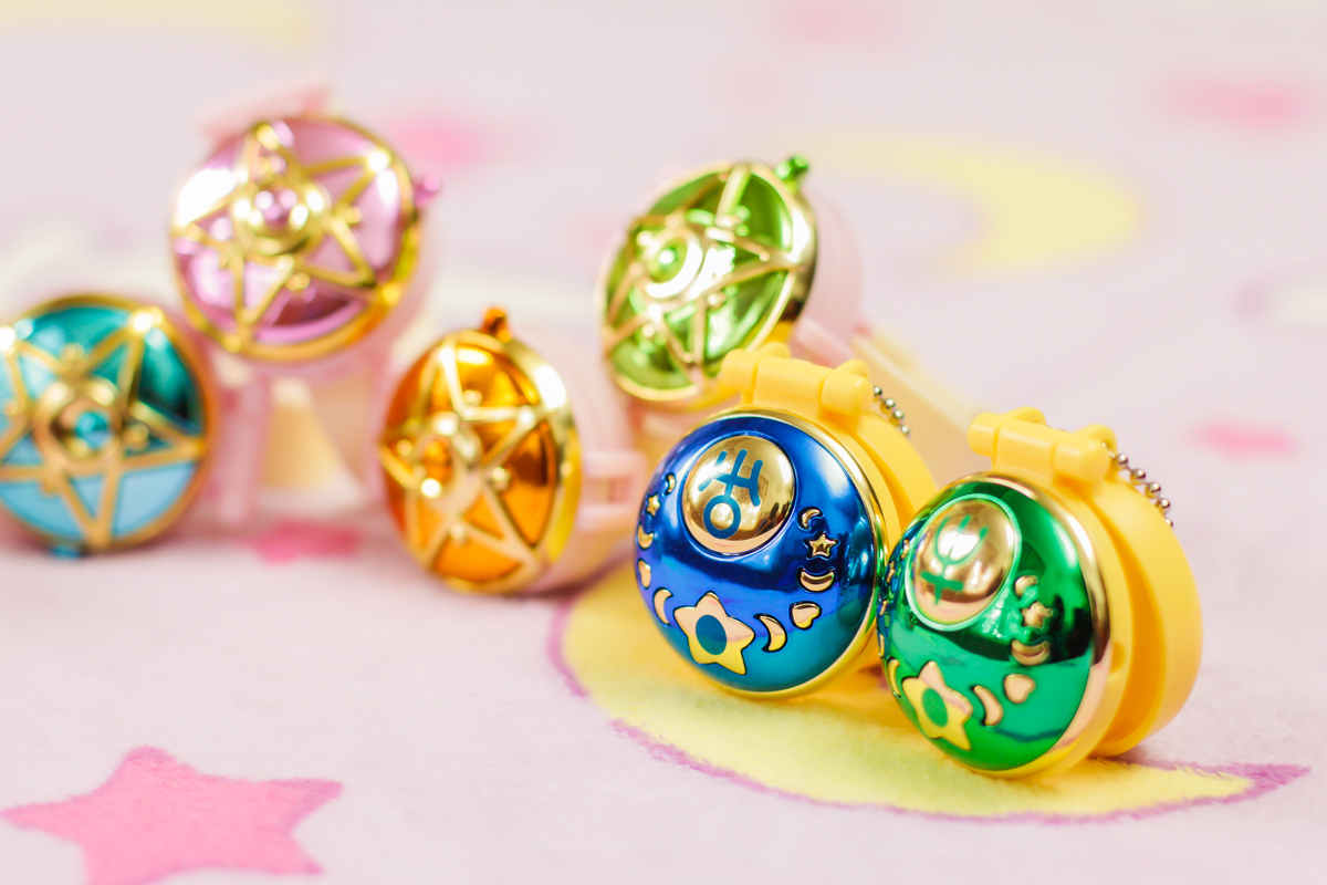 You would need to get Sailor Moon’s watch from a machine in order to make them all functional watches :’D (I got mine as a complete set) The cover is interchangeable so you can wear whichever senshi colour you want, swapping with Sailor Moon’s one. The four inner senshi watches have a small compartment underneath. Sailor Uranus and Neptune’s are small key chains which also contains an empty compartment inside.