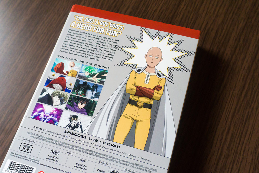 It’s review time :D! Today I’ll be sharing with you unboxing pics of the newly released ‘One Punch Man’ Limited Edition bluray/DVD combo by Madman. It contains the complete first season with 12 episodes + 6 short OVAs. It comes in a very cool cut-out box with a booklet and 6 glossy character art cards.